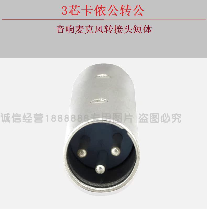 3芯卡侬公对公音响麦克风转接头短体 音响调音台话筒直通头3芯