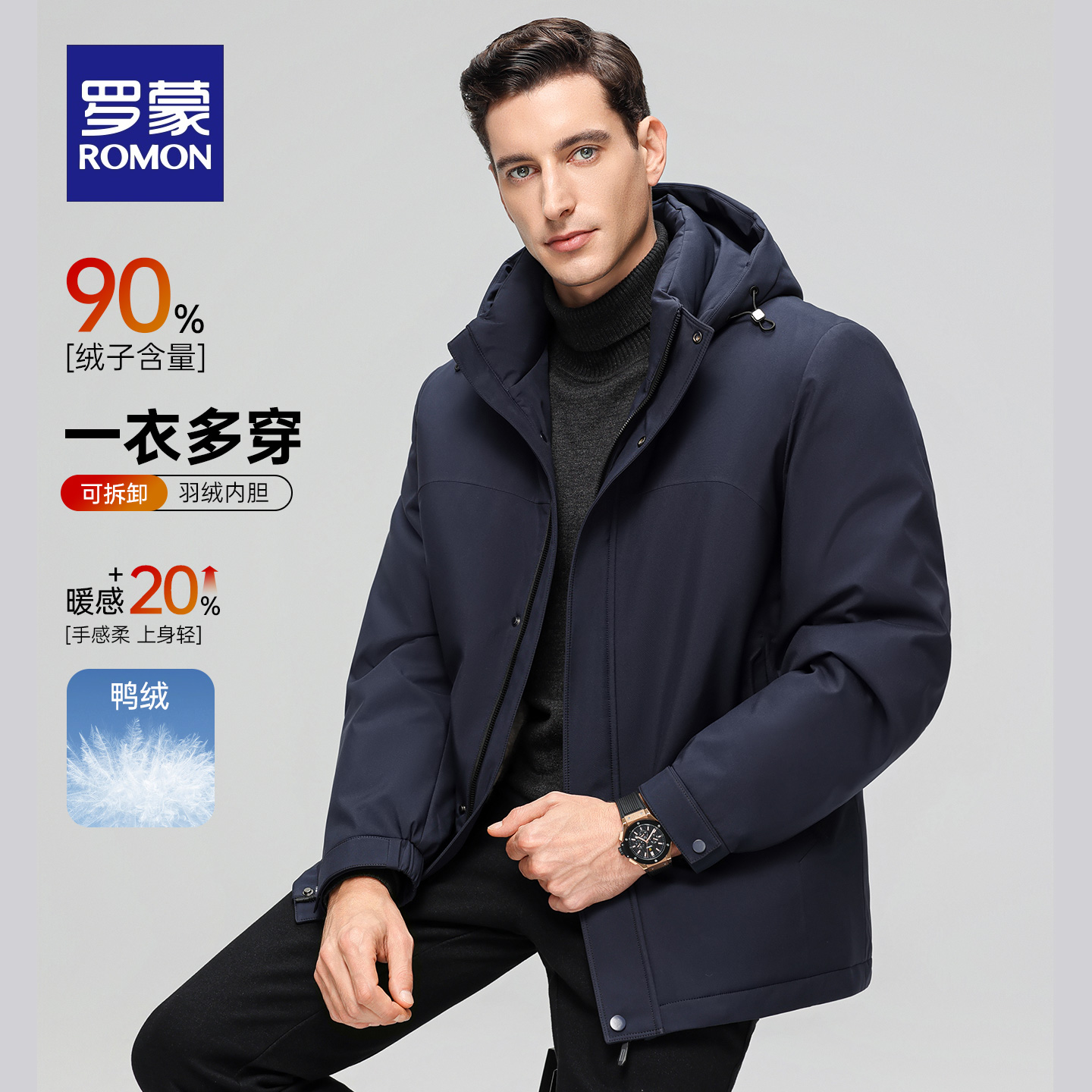 【牛奶丝+一衣五穿】罗蒙短款羽绒服2025冬新款可拆卸内胆外套男