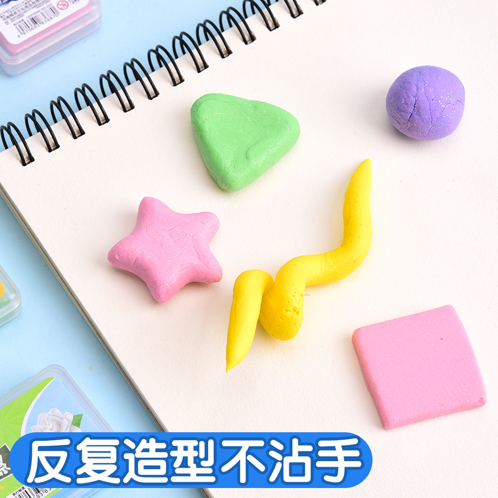 儿童可塑橡皮擦可拉丝不沾手彩色橡皮擦幼儿园软泥造型手工可变色双色橡皮擦塑形软像皮软泥盒装高光不掉渣