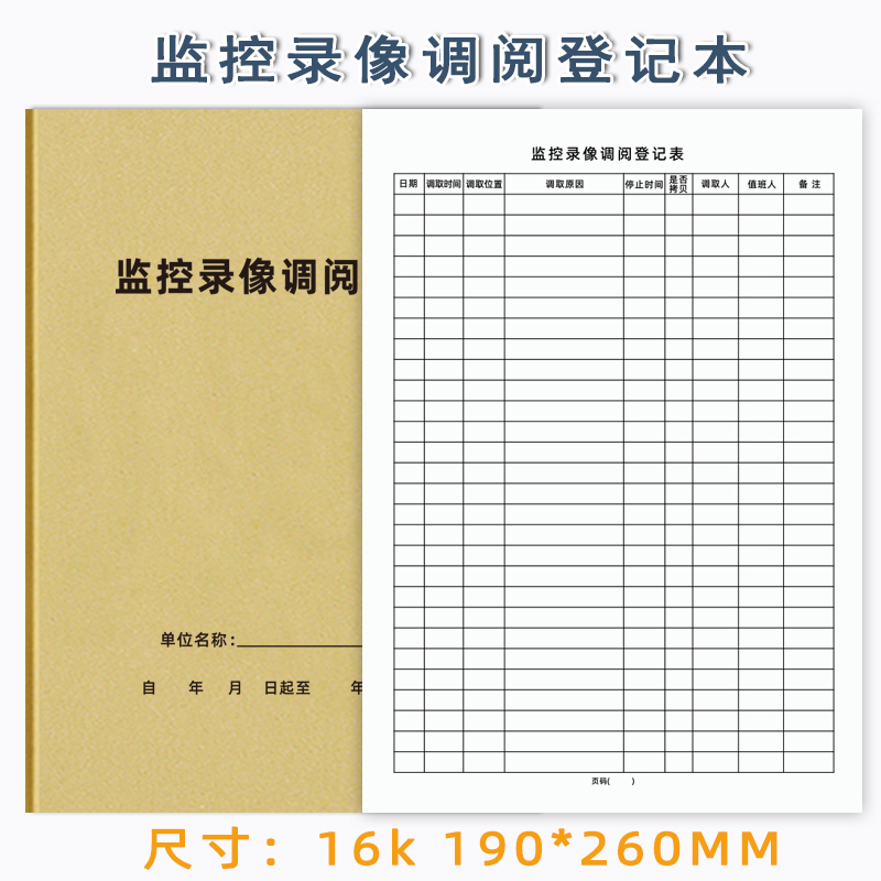 监控录像调阅登记本监控室值班记录本物业管理监控室值班交接班记录本小区大厦控制室保安值班记录表现货定制