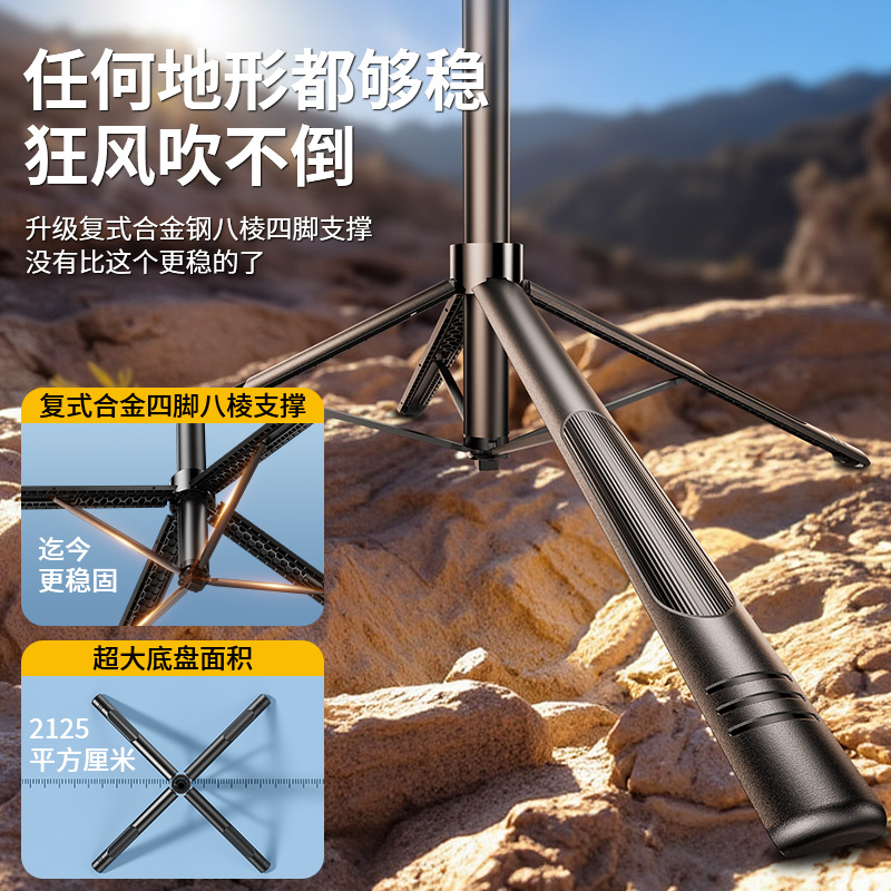 2025新款防抖自拍杆三脚架手机拍摄支架手持便携式全景360度旋转多功能旅游拍照神器抖音落地直播四脚架2025