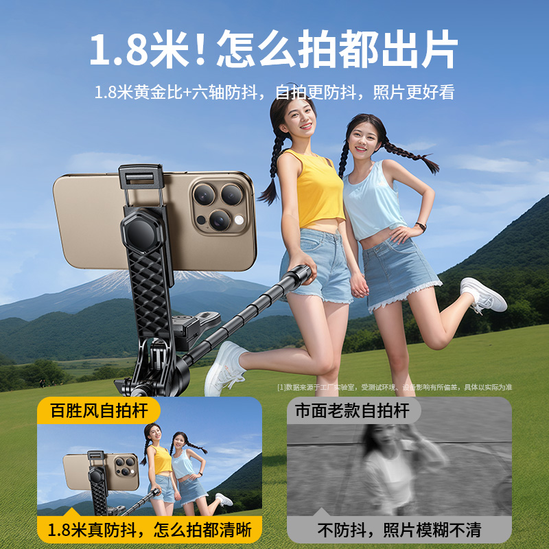 品胜迷你自拍杆2025新款旅游便携落地三脚架防抖手机支架360度旋转手持通用自拍神器拍摄直播演唱会拍照vlog4