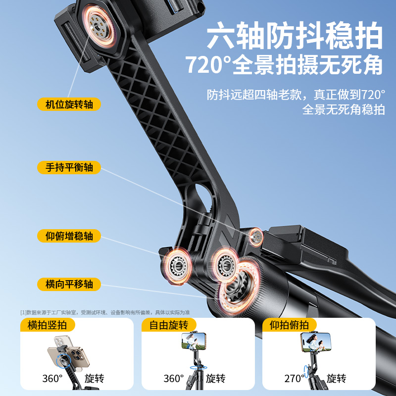 2025新款自拍杆三脚架蓝牙六轴云台手机通用防抖拍摄直播支架自拍神器旅游便携360度旋转相机户外手持演唱会