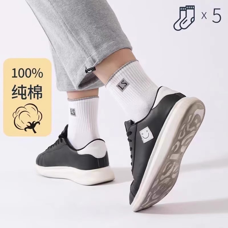 松山棉店黑白灰袜子男女抗菌防臭吸汗短袜中筒袜秋季薄款棉袜运动