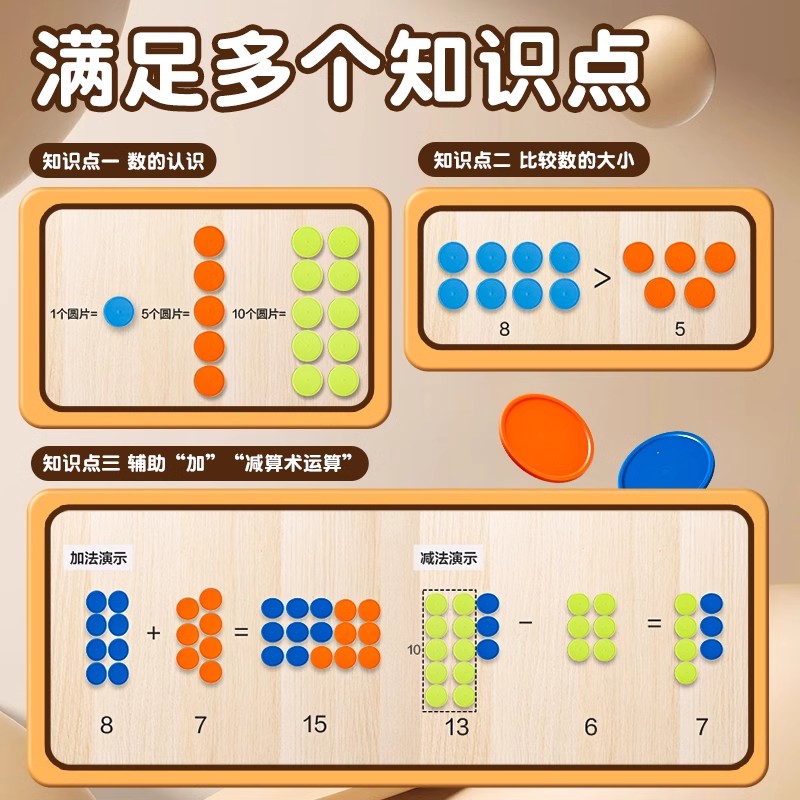 得力立体几何体小圆片套装数学计数学习加减法儿童算数算术教具一年级学具儿童算数教具数学学习神器YX491