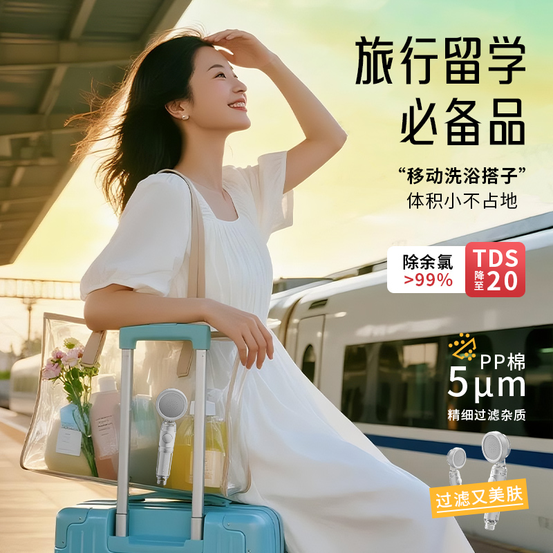 旅行增压过滤花洒喷头洗澡水龙头淋浴美肤过滤器除氯净化通用