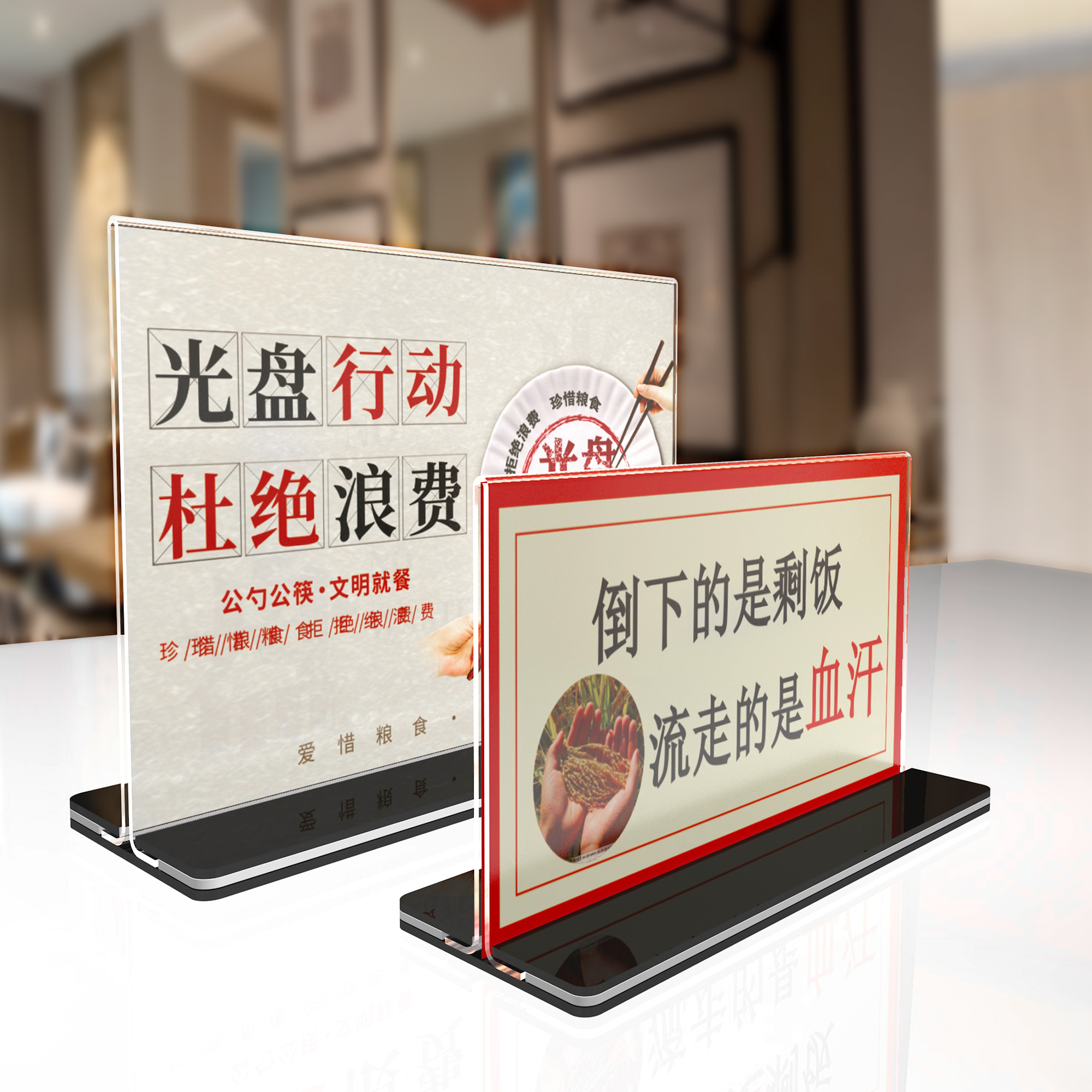 光盘行动桌牌 厉行节约杜绝浪费珍惜节约粮食文明用餐餐厅亚克力台牌桌签食堂合理点餐提示牌饭堂台立标识牌