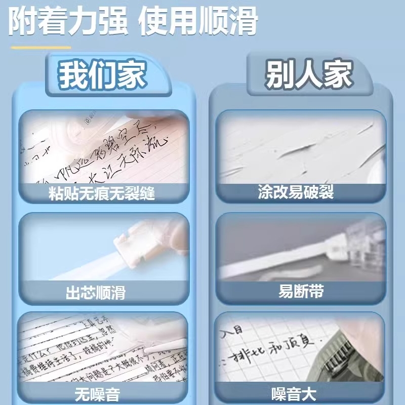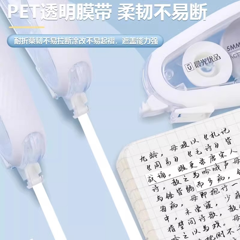 修正带初中生专用晨光高颜值静音优品小学生黑科技涂改耐摔无痕去字大容量改正带女生初30米批发顺滑透明白色