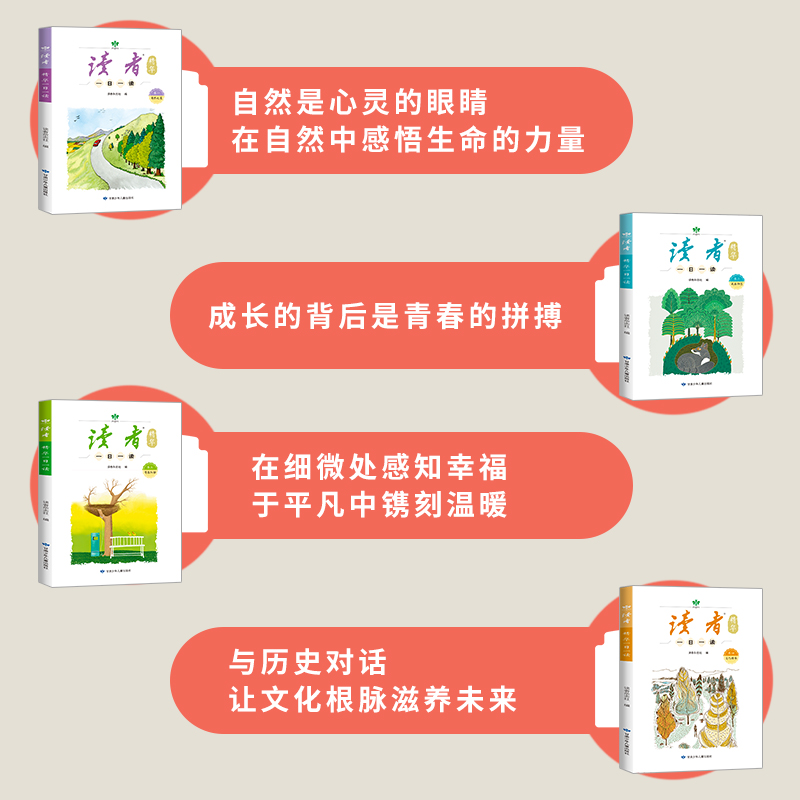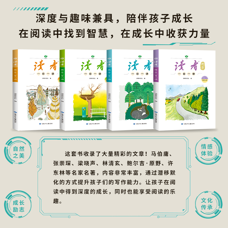 【抖音同款】读者一日一读精华版全套4册杂志文摘成长亲情生活学习梦想校园书小学初中版作文素材积累心灵读本读物读者2025杂志