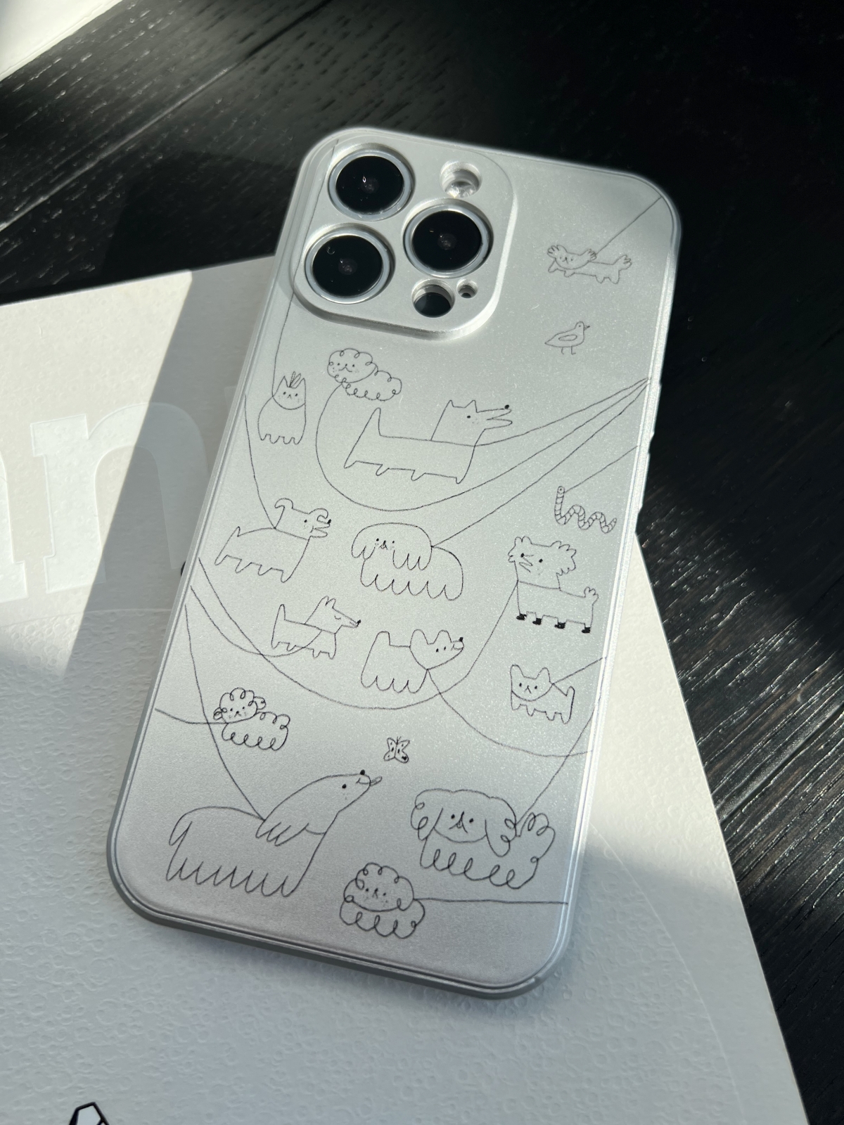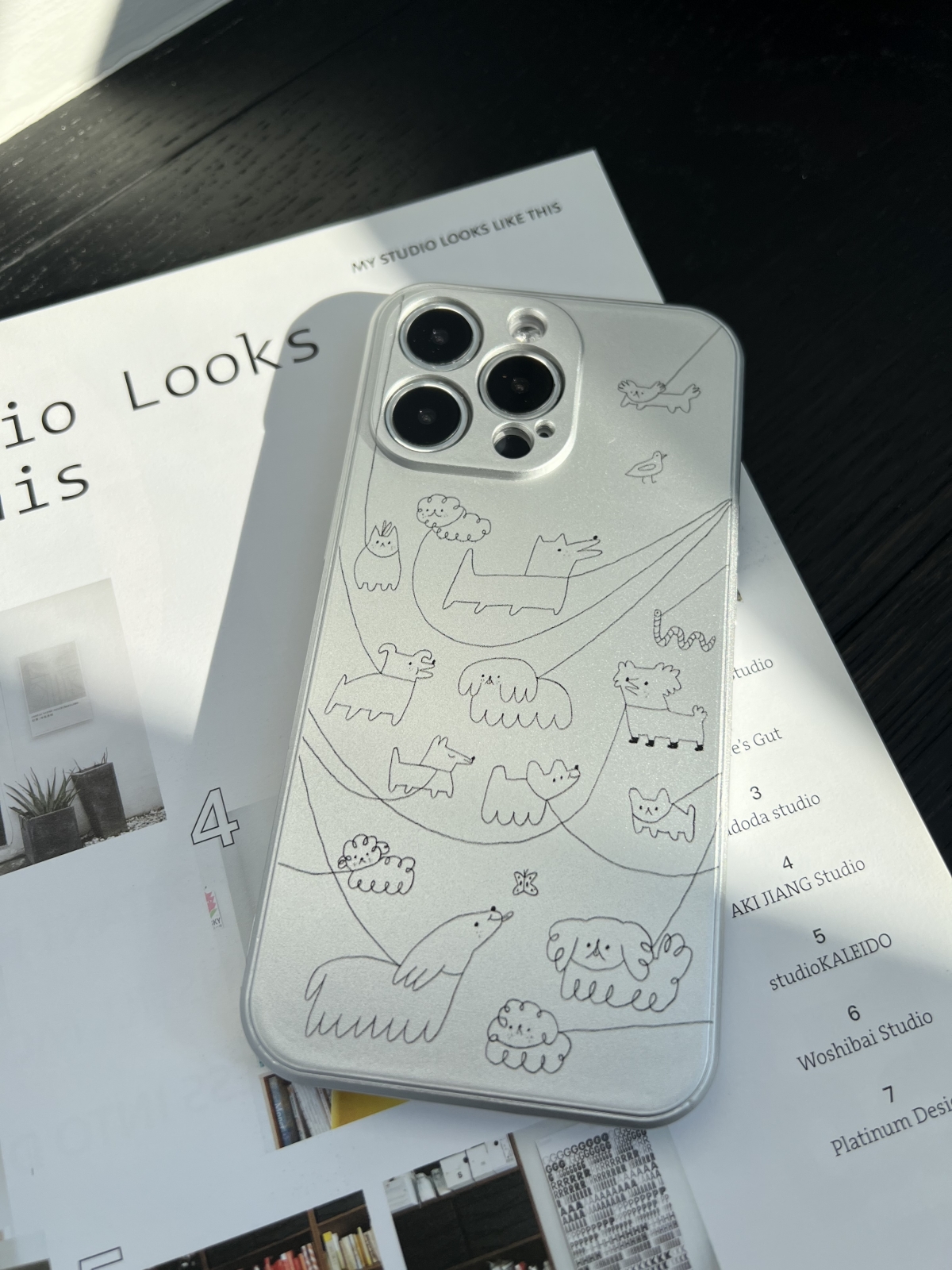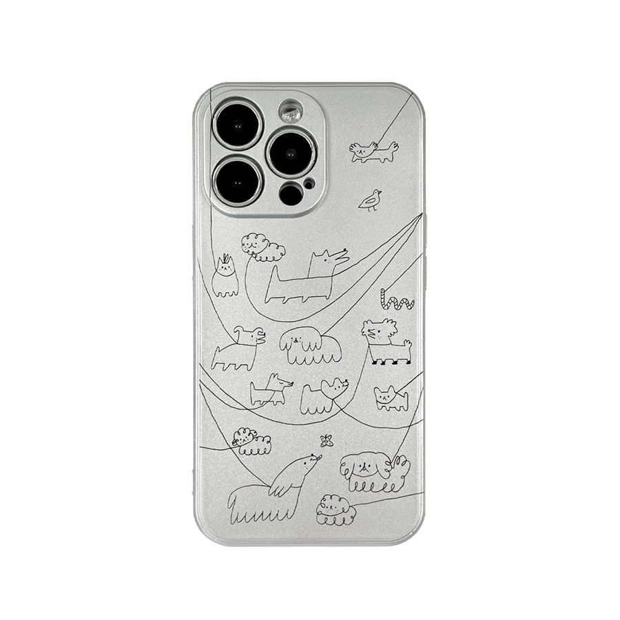 选项没有的型号可定制!!电镀银适用iphone15promax可爱线条14plus小狗手机壳苹果11/12/13保护套卡通简约