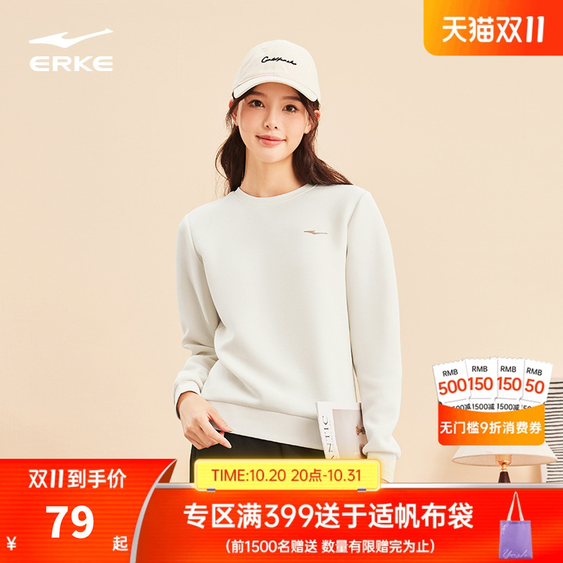 鸿星尔克卫衣女2025秋冬新款女士女款运动服加绒圆领长袖上衣女装