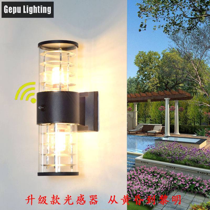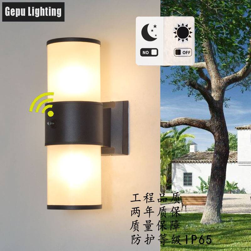 感应壁灯光控庭院灯双头上下发光门前灯现代圆形铝管花园外墙灯