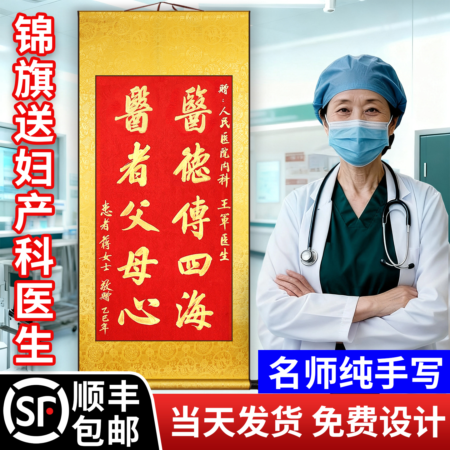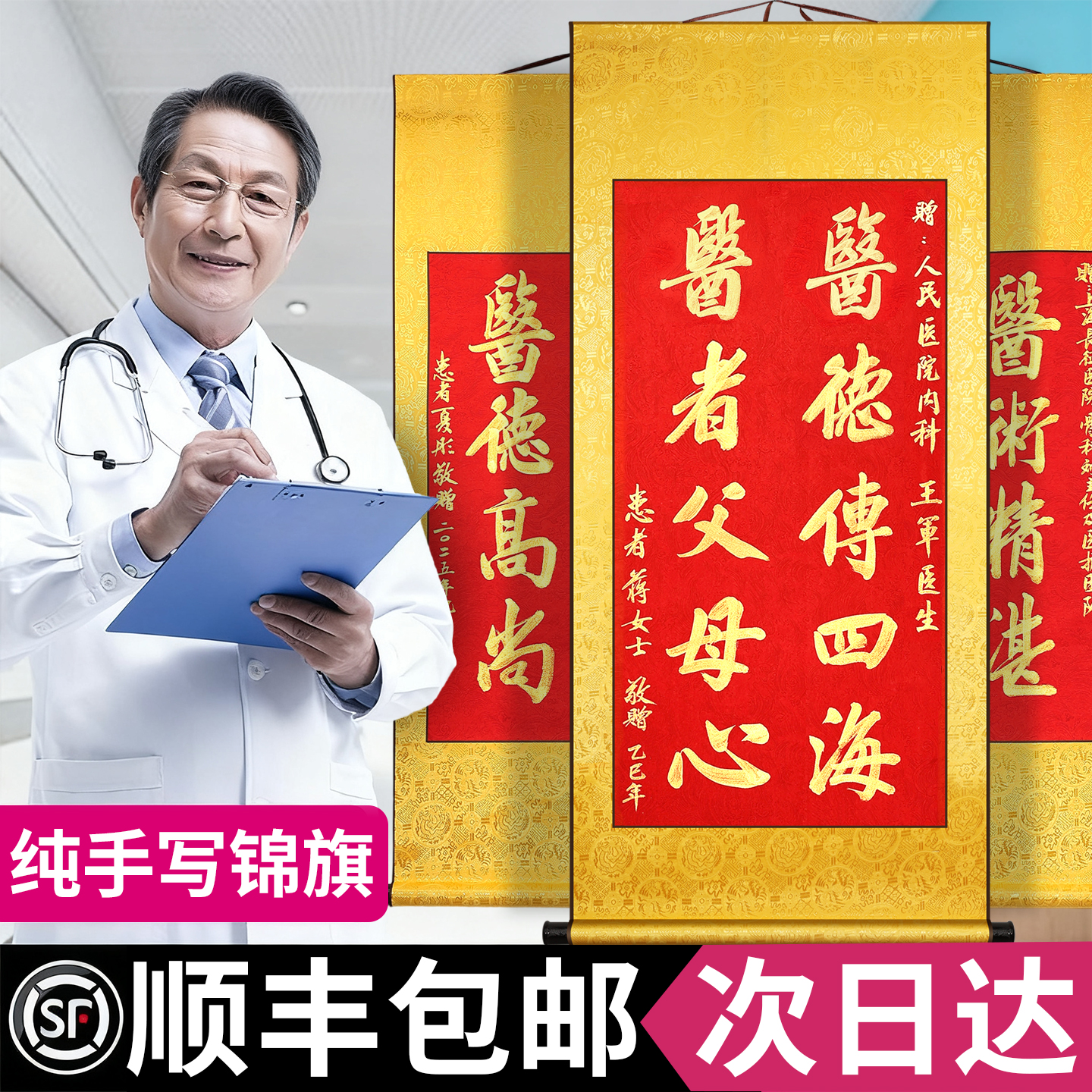 高档锦旗定制感谢医生旌旗定制送医生的锦旗定制感谢妇产科医生送子医护人员护士骨科医生搞笑中秋节创意礼品