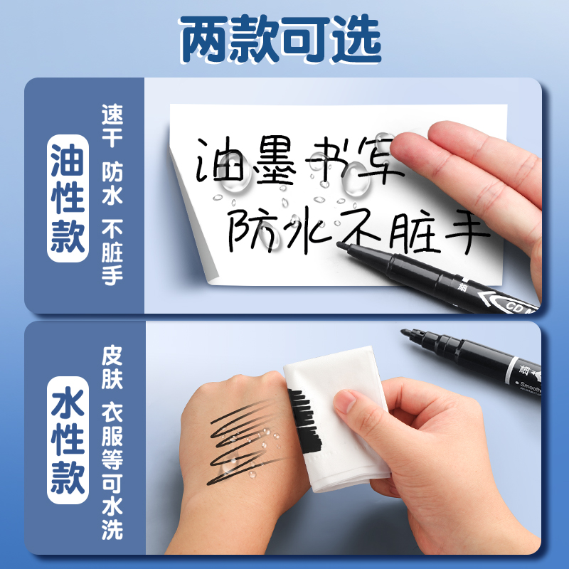 小双头记号笔勾线笔黑色油性速干防水防油不掉色大头马克笔工地美术专用儿童幼儿园小学生绘画描边粗细红蓝水