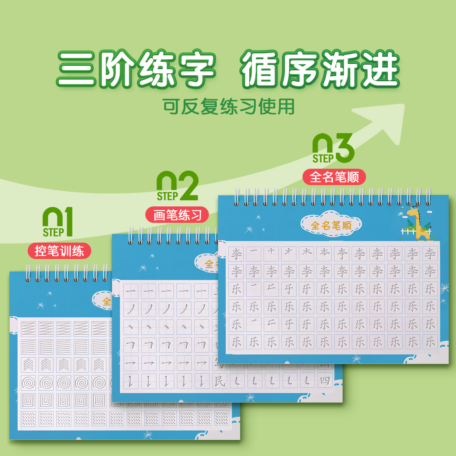 姓名练字帖凹槽练习儿童名字练字帖幼儿园姓名贴练自己名字的字帖