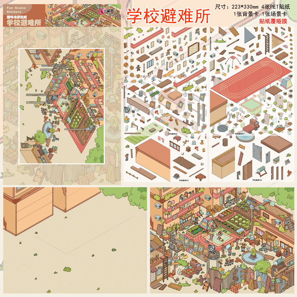 学校避难所造景贴纸雀麦10.0长安诡市中式恐怖大号大尺寸高难度微缩场景合集本复古立体小屋手工解压玩具女孩