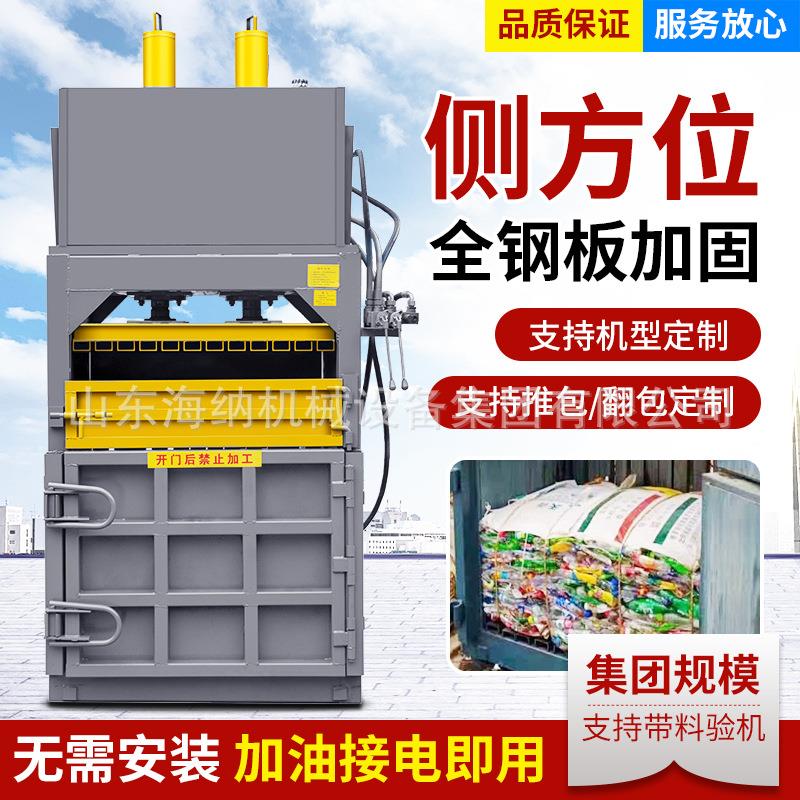 立式塑料编织袋打包机小型压废纸液箱包机易60T拉瓶罐废纸打包打