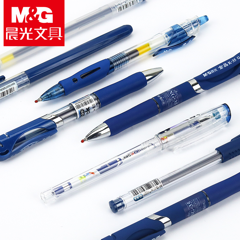 包邮晨光k35按动中性笔水笔学生用考试碳素黑色水性签字笔芯0.5mm
