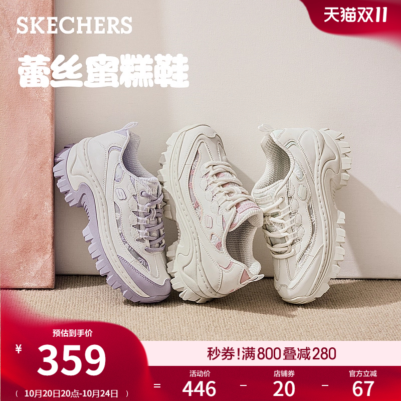 斯凯奇蕾丝蜜糕鞋|女轻便老爹鞋2025秋厚底增高休闲运动鞋小白鞋