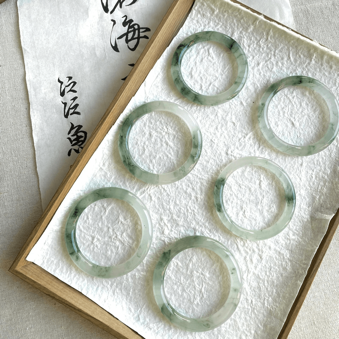纯天然新疆天山翠手镯女款雪翠飘花玉镯子金丝玉圆条扁镯玉石正品