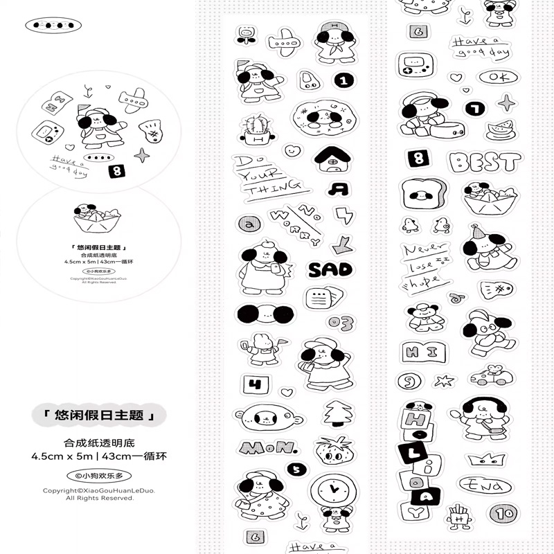 【分装】小狗欢乐多全系列和纸胶带合集手帐装饰可爱风黑白线条
