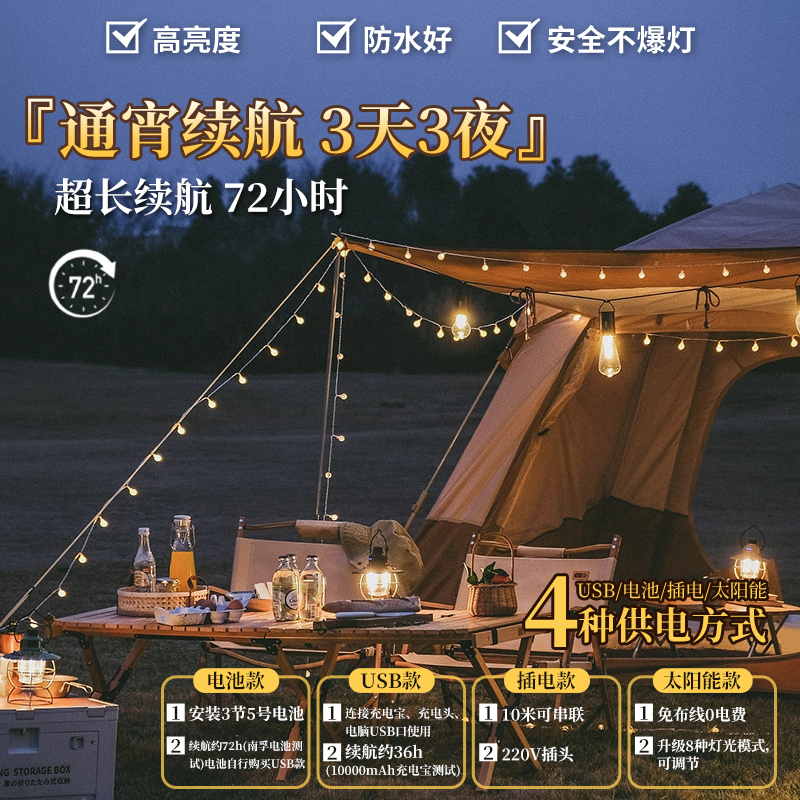 防水露营氛围灯摆摊装饰灯带led小彩灯串灯灯串太阳能户外阳台