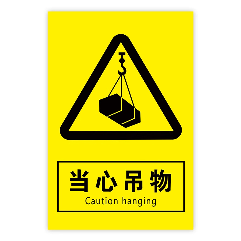 施工工地小心坠物行车塔吊车起重机吊装区域注意安全禁止停留提示牌贴纸起升物品下方严禁站人当心吊物标识牌