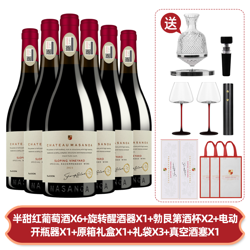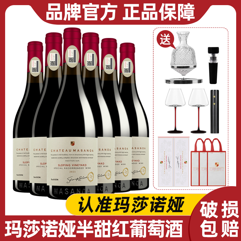 玛莎诺娅坡地半甜红葡萄酒法国14度红酒6支装送酒杯酒具750ml梅洛