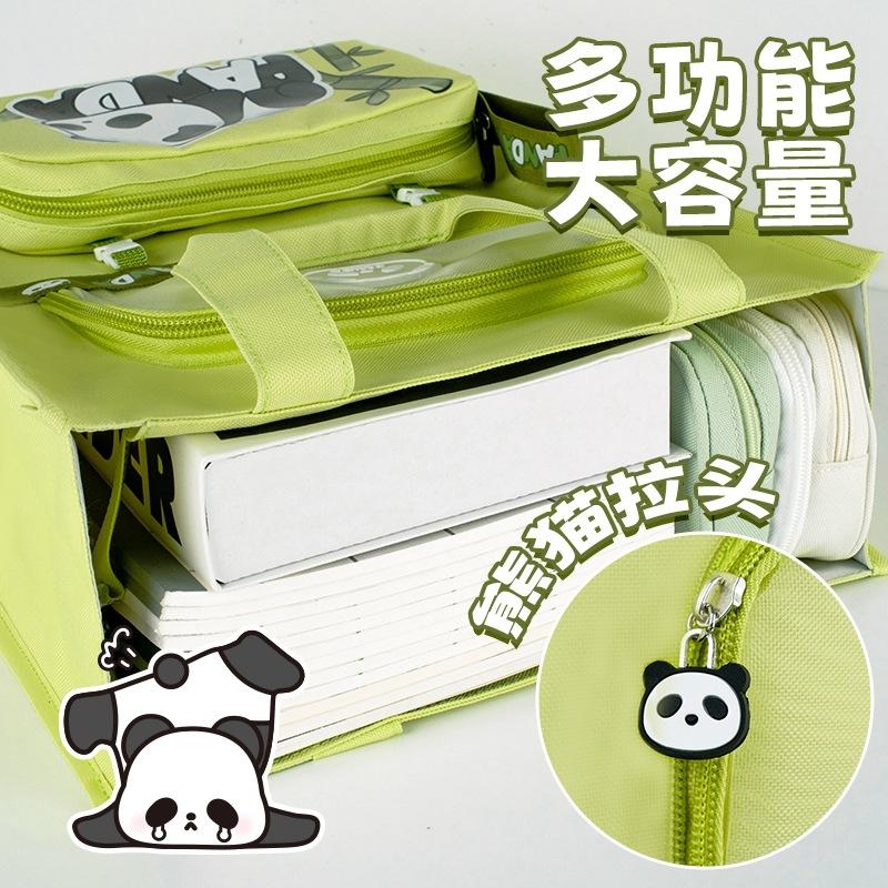 摩克熊猫补习袋 秋冬新款A4大容量单肩手提书袋补习班加厚补课包