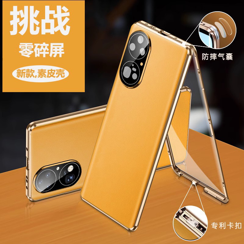 适用华为p50pro手机壳新款p50 素皮不要贴膜的手机套q50e后壳新款男士p59高级感防摔opro全包的ro平拍怕外壳