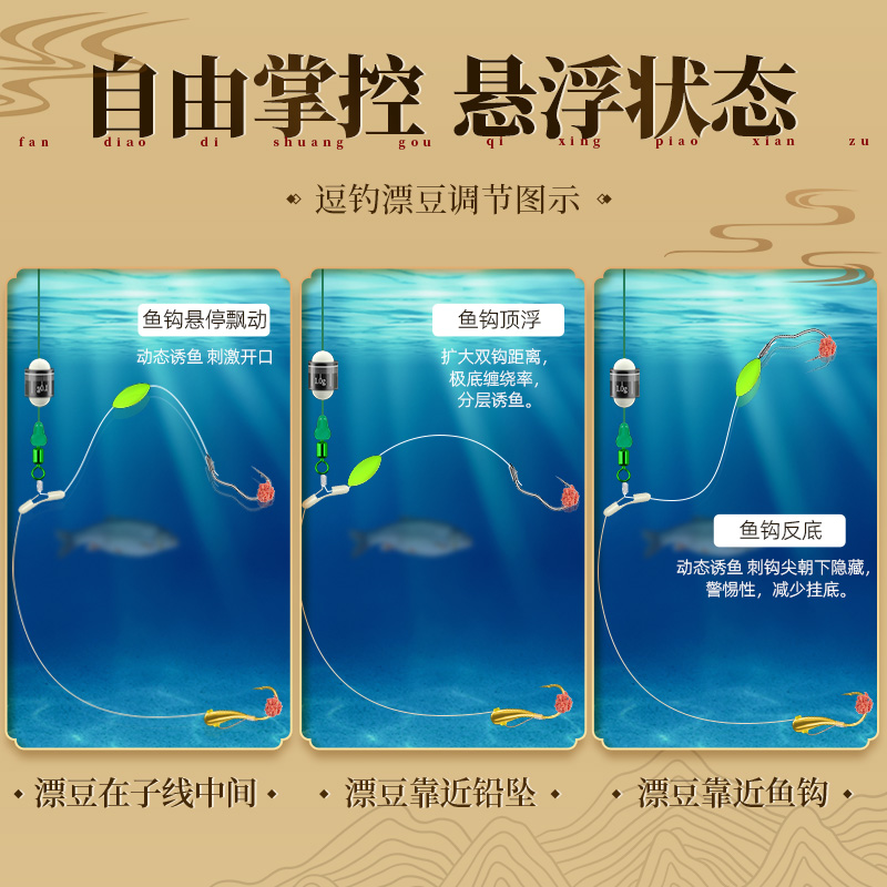 七星漂悬停逗钓线组传统钓免调漂自动找底钓组反底钓鲫鱼翻转鱼钩