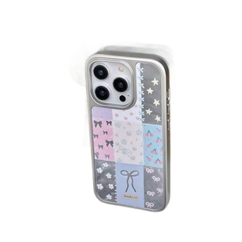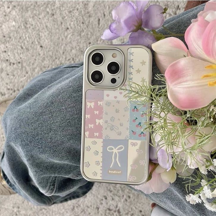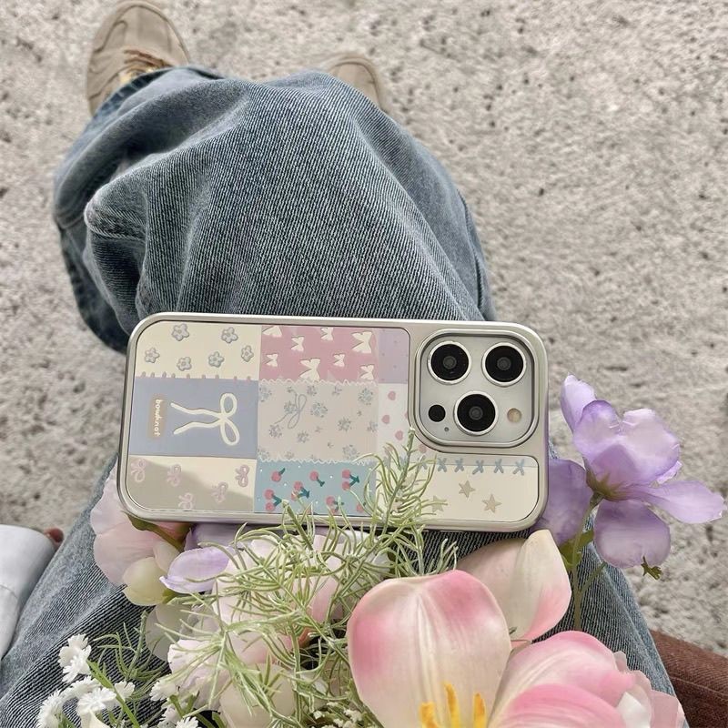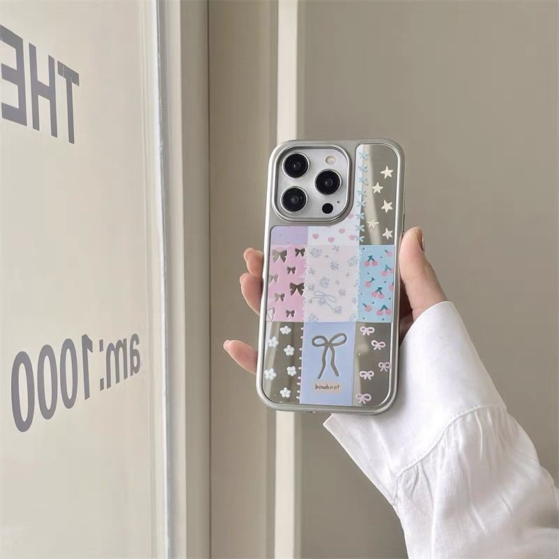 拼接碎花镜面补妆镜子适用苹果16promax手机壳女iPhone15p高级感14p日韩ins13少女12卡通11防摔保护xr8p软