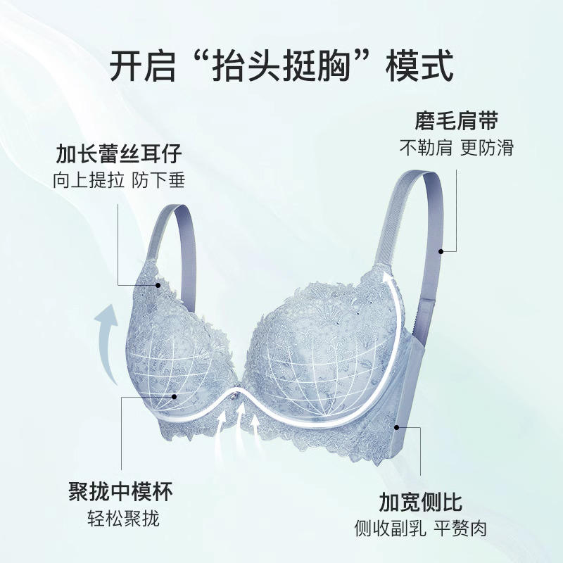 古今内衣女透气小胸聚拢蕾丝上托有钢圈文胸舒适透气