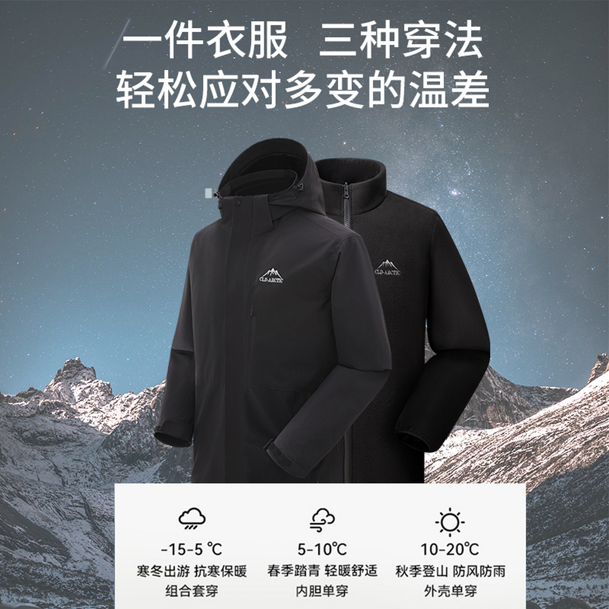 【王一博明星同款】鸭鸭冰壳系列冲锋羽绒服男女冬季三合一外套Y