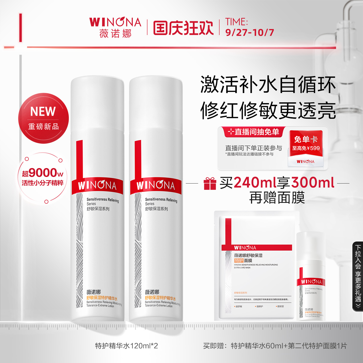 薇诺娜舒敏保湿特护精华水敏感肌爽肤水化妆水湿敷水舒缓修护补水