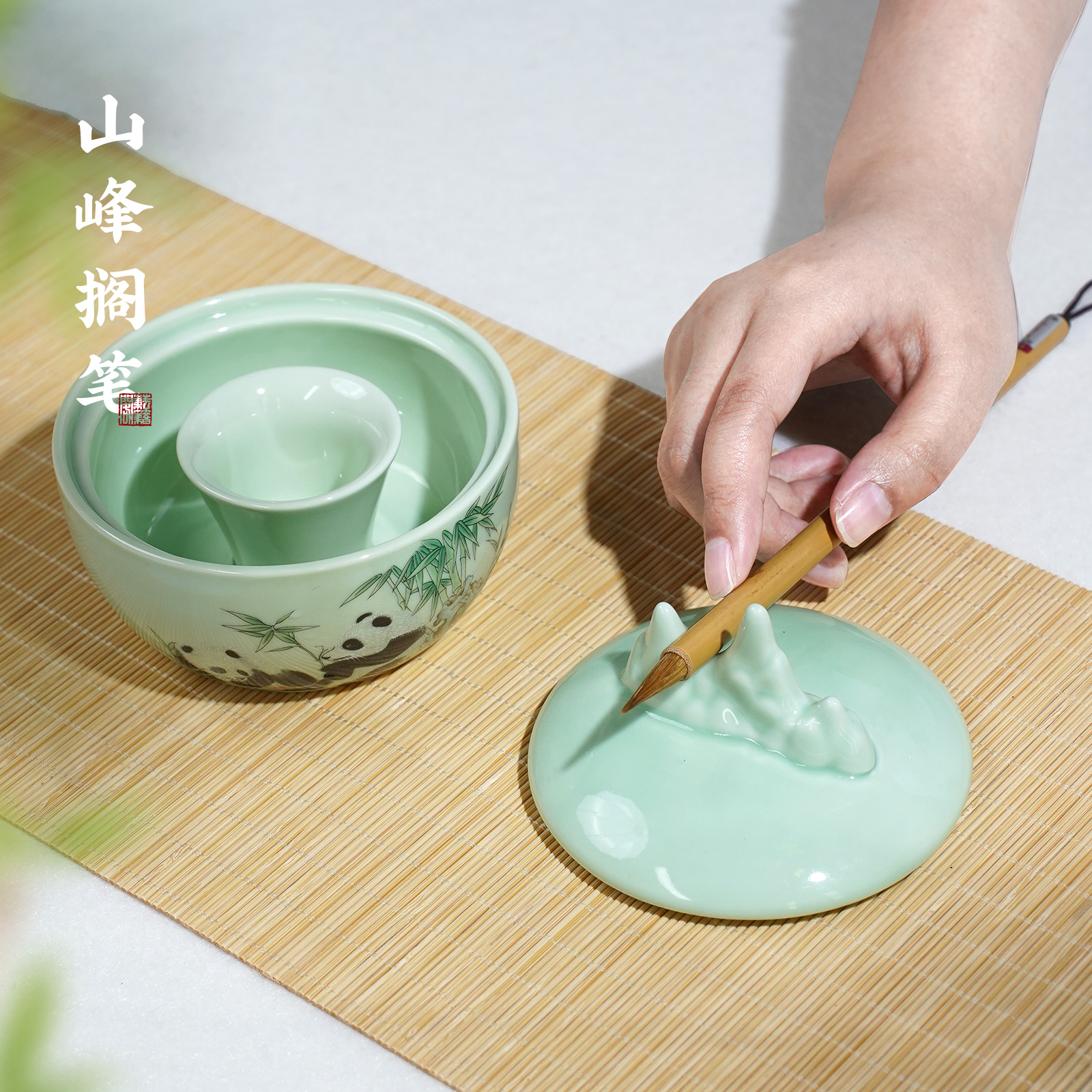 陶瓷火锅砚台毛笔书法用品国画专用多功能带盖毛笔架墨池墨台保湿墨盒不干墨汁墨碟墨海文房四宝墨汁学生砚台