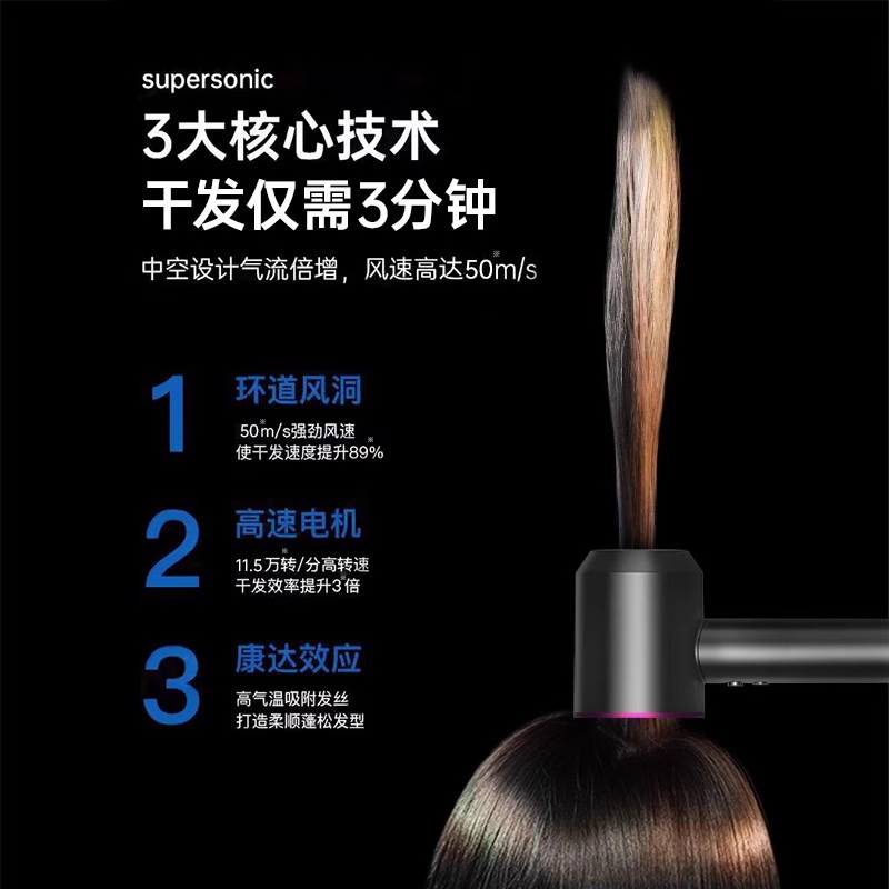 高速吹风机家用负离子护发大风力中空无叶速干降噪电吹风筒华强北