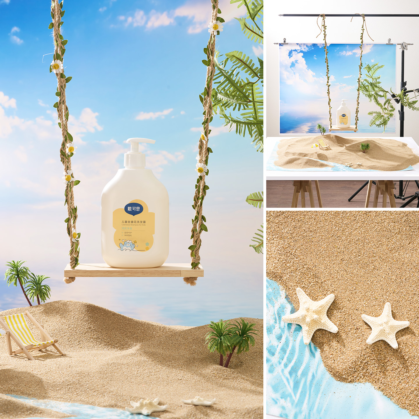 沙滩拍照道具摆件 蓝天海面背景纸椰子树贝壳秋千微型场景搭建化妆品护肤品饮料奶茶摄影拍摄氛围感背景布