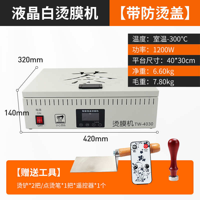 弘文TW-4030白色烫膜机双屏数显茶叶礼盒智能恒温加热塑封机多功