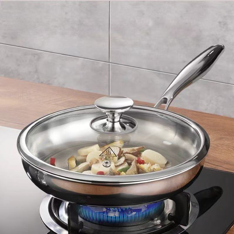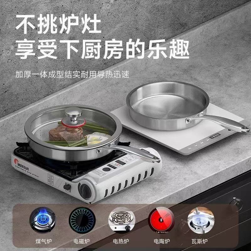 316无涂层煎锅不锈钢平底锅家用不粘锅食品级加厚电磁炉专用炒锅