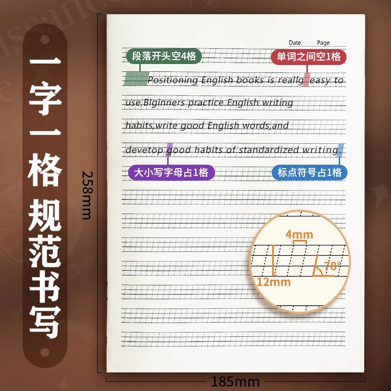 英语定位牛皮本衡水体书写本学生练习纸英语句子定位规范书写格子