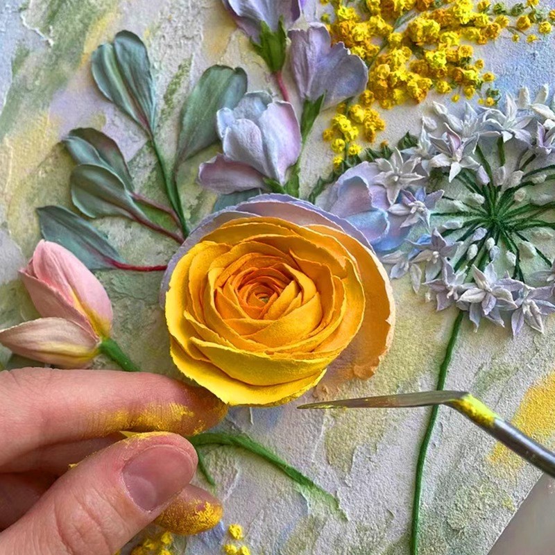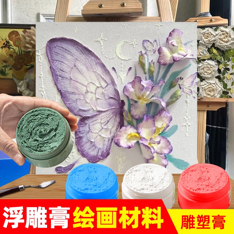 速发浮雕绘画雕塑膏塑型肌理膏丙烯颜料立体画浮雕材料刮刀花浮雕