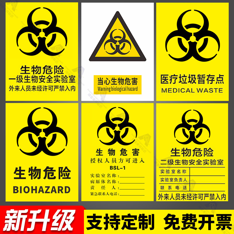 生物危害一级二级生物安全实验室BSL12安全警告警示牌安全标识牌标志贴当心感染提示牌警示牌警告贴纸PVC定制