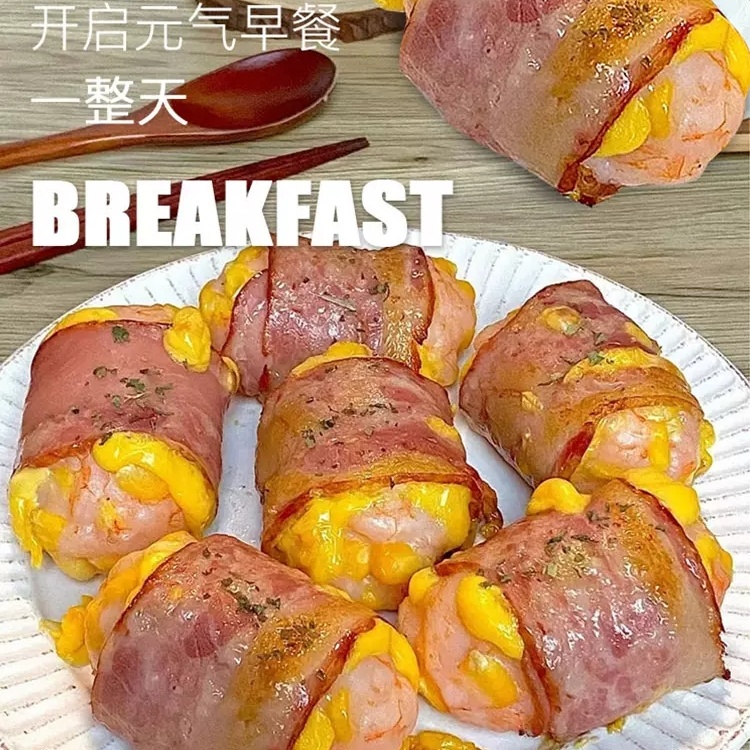 芝士培根虾滑卷早餐加热即食懒人速食土豆泥芝士冷冻早餐半成品