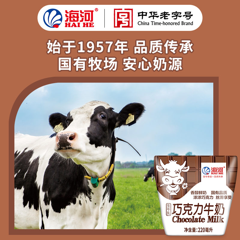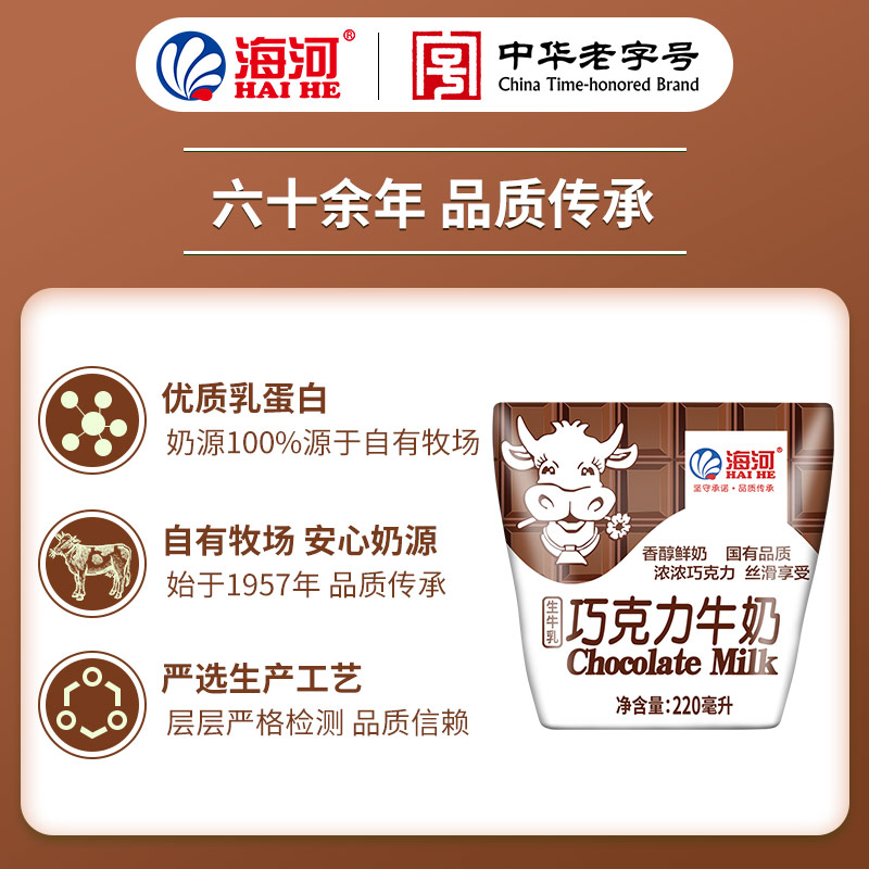 海河牛奶巧克力味220ml*10包整箱儿童营养早餐奶网红风味奶旗舰款