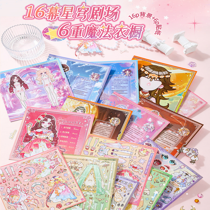 (免剪裁无白边)益智星座主题不重复可爱人物换装游戏贴纸手帐DIY56789岁女孩儿童节生日礼物少女心手账咕卡