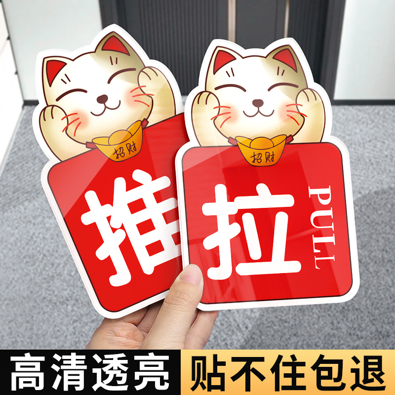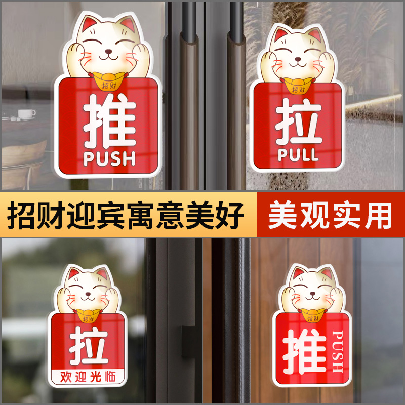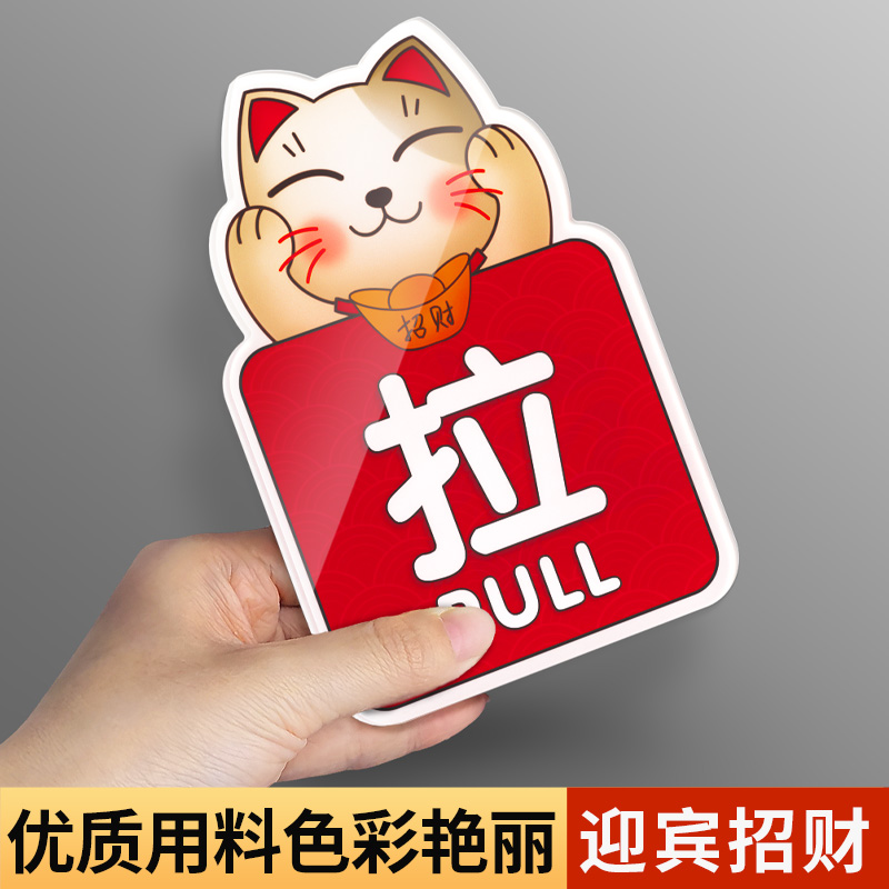 推拉门贴提示牌高档高级亚克力玻璃门推拉标识牌门口装饰挂牌左右移门店铺拉字标志贴招财猫吸引广告创意门牌