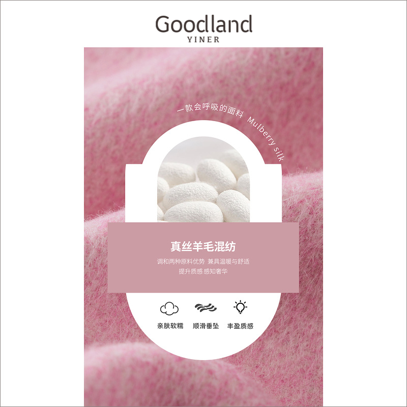 【绵羊毛+兔毛】Goodland美地女装冬季温柔风翻领双面呢大衣外套