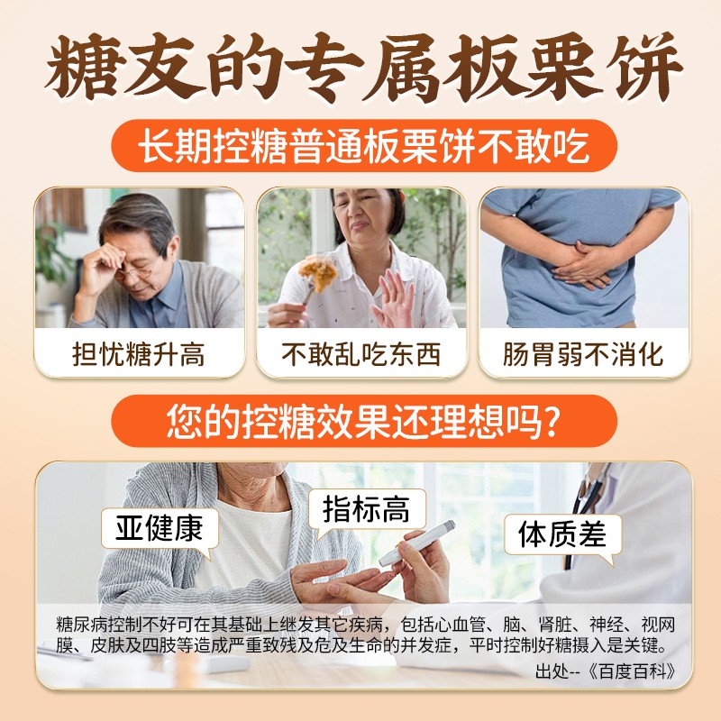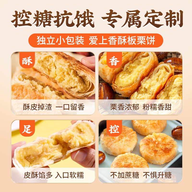 糖尿病人专用无糖精板栗酥饼食品零食三高血糖糖友控糖专用零食品