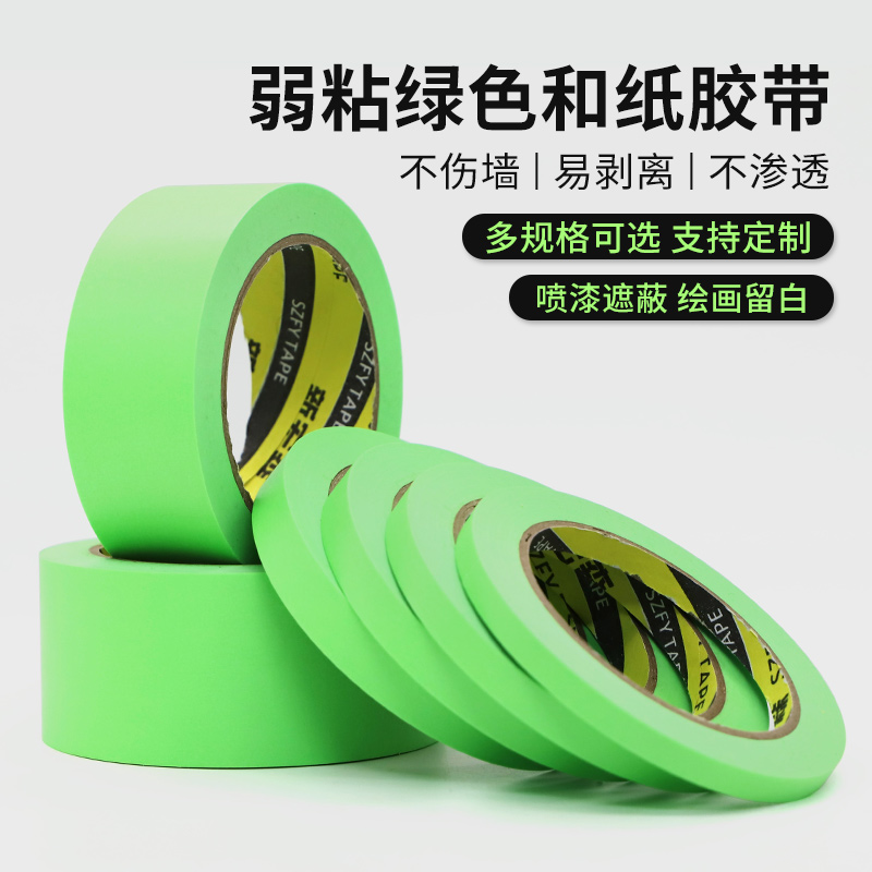 弱粘性美纹纸和纸胶带刷墙面艺术漆乳胶漆分色纸喷漆遮蔽美纹纸低粘度低粘性无痕手撕不粘底不伤墙弱胶美纹纸